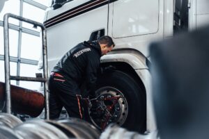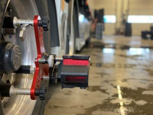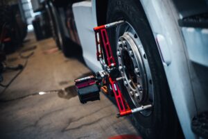 Vi gjennomfører også bytte av styre- og parallellstag på lastebiler sammen med hjulinnstilling.